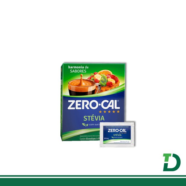 Adoçante Sache ZERO-CAL Stévia caixa c/ 50 Envelopes 800mg