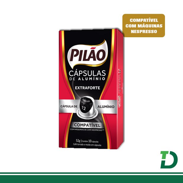 As Cápsulas de Alumínio reforçam a qualidade do espresso do dia a dia , pois protegem o café contra a luz, umidade, oxigênio e outros fatores que degradam o produto, entregando muito mais sabor, aroma e crema, além de traduzirem a praticidade e modernidade do Café Forte do Brasil. Um espresso poderoso que não passa despercebido. É assim a forte e impactante personalidade do blend Extraforte. Com as ricas notas dos grãos Arábica e de diferentes tipos de Robusta este espresso proporciona uma experiência sensorial intensa e vibrante. As cápsulas de café Pilão são compatíveis com máquinas de café Nespresso®*. EXTRA FORTE Um café que de destaca pela sua força, intensidade e aromas. Servido a 40 mL. INTENSIDADE (12)