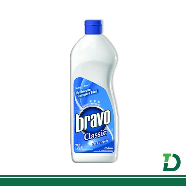 | Modo de uso: | 1. Sobre o piso limpo e seco, aplique Bravo Classic, espalhando com um pano limpo ou esponja. 2. Deixe secar. 3. Se desejar um brilho mais intenso, passe uma flanela limpa ou utilize a enceradeira, de preferência com discos de feltro. 4. Para a limpeza do dia-a-dia basta passar um pano macio, levemente úmido. |