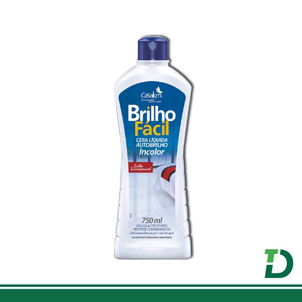 AGITE ANTES DE USAR. A versão incolor é destinada para todas as cores de piso. 1) Faça a remoção de toda a cera anterior, caso não seja Brilho Fácil. Limpe bem o piso e deixe secar. Brilho Fácil não necessita de enceradeira. Indicamos a remoção da cera do piso a cada 6 ou 7 aplicações, utilizando Removedor de Ceras da Casa KM. |