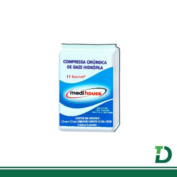 | Instruções de uso: | – As compressas cirúrgicas de gaze hidrofíla Medi House são utilizadas em curativos de maneira geral ou em cirurgias para absorção de sangue e secreção liquida. Podem ser utilizadas também em assepsias.