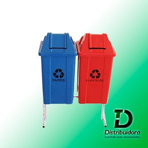 Descrição: Conjunto para coleta seletiva com 2 cestos quadrados com tampa vai-vem.