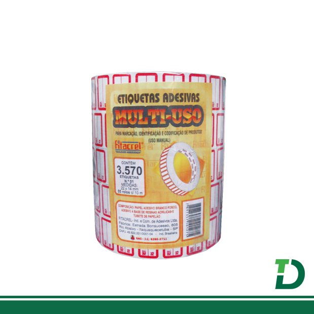Cada pacote contem 5 rolos com com 10Metros cada rolo e um total de 3.570 etiquetas, cada rolo contém aproximadamente 714 etiquetas. Ref: 07 |