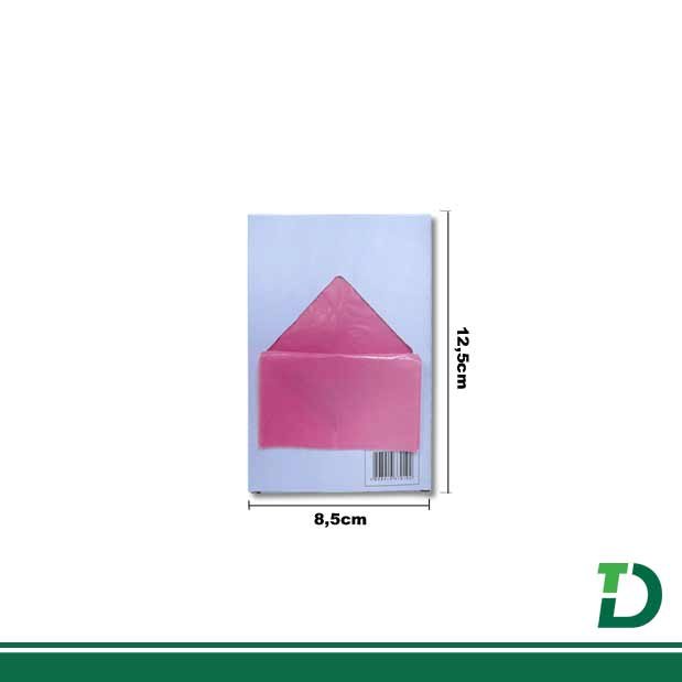 - Tipo do material : Polietileno (PEBD) virgem, liso, cor rosa, espessura de seis micras