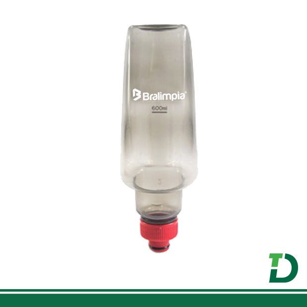 Reservatório compatível com o Mop Spray Bralimpia com tampa vermelha.