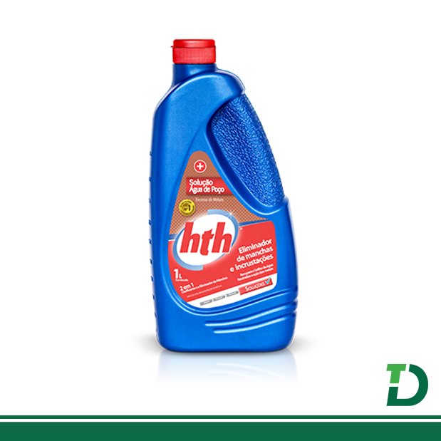 A Solução Água de Poço HTH inibe a ação dos metais e age como clarificante prevenindo e eliminando as manchas e mudanças na cor da água. |